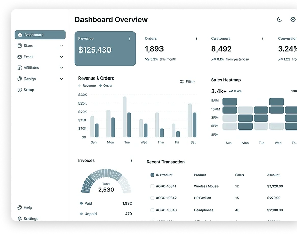 • Live revenue dashboards with zero manual updates